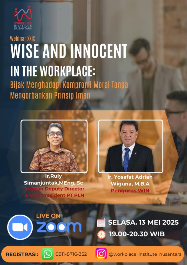 Mari belajar bersama tentang hal-hal ini di WIN Webinar: "Wise and Innocent in the Workplace": Bijak Menghadapi Kompromi Moral Tanpa Mengorbankan Prinsip Iman